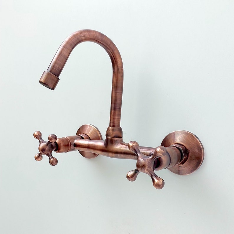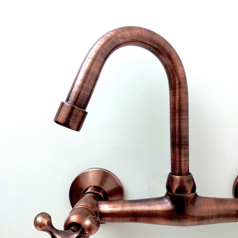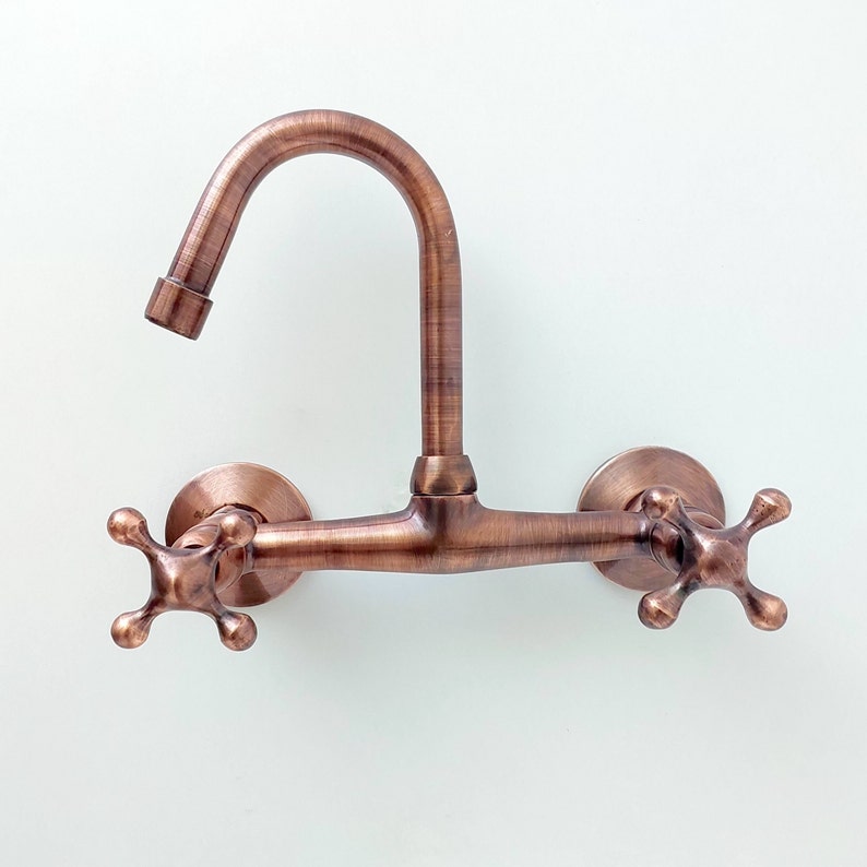 Upgrade your kitchen or bathroom with this copper Wall Mounted Faucet by KESHMARK With over 30 years of experience in the brass manufacturing industry, we bring you a high-quality, durable faucet perfect for any home. This faucet features cross handles, giving you the option to choose the handle that best suits your home decor. The copper finish adds a touch of elegance and vintage charm to your sink. Easy to install and built to last, this faucet will be a perfect addition to your home