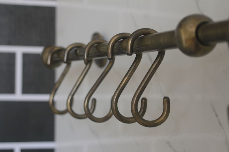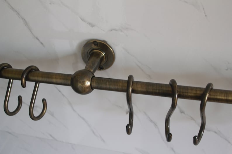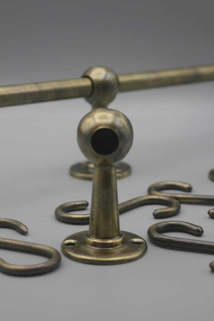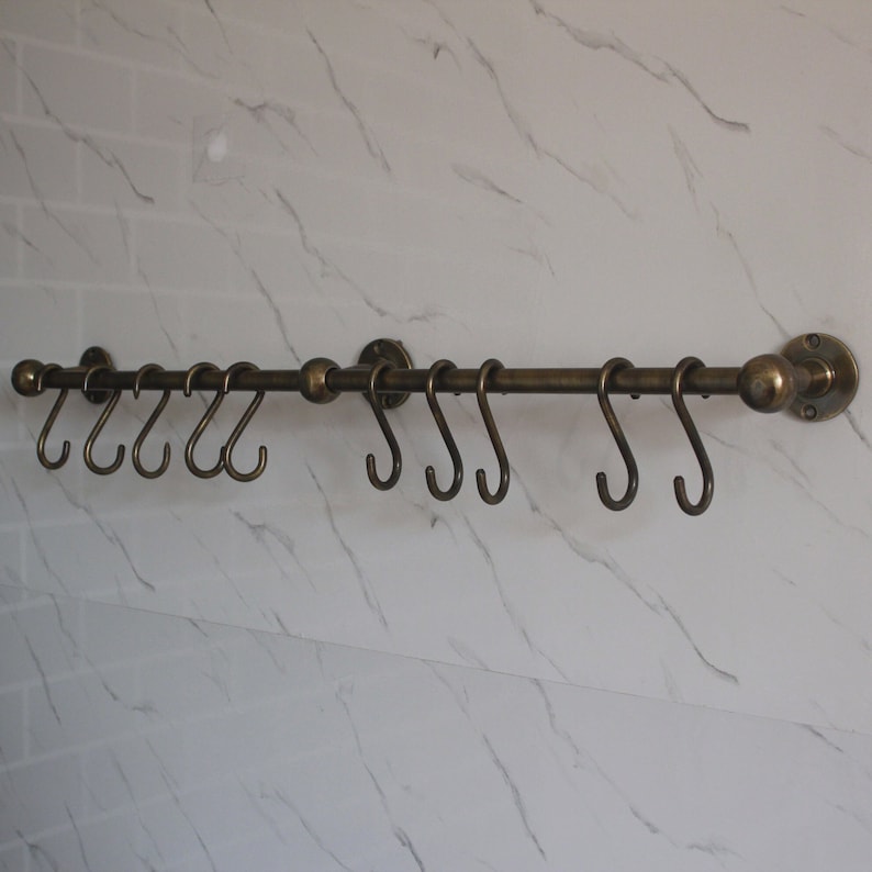 Introducing our exquisite Aged Bronze Brass Wall Mounted Organizer Rack with 10 Hooks, the perfect blend of style and functionality for your home or kitchen. This elegant brass rack seamlessly merges timeless design with practicality, offering a sophisticated solution to meet all your organizational needs.
