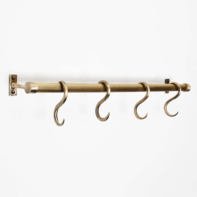 Aged Brushed Brass Kitchen Hanging Rail | Pot Towel Kitchen Utensil Wardrobe Hanging Rails