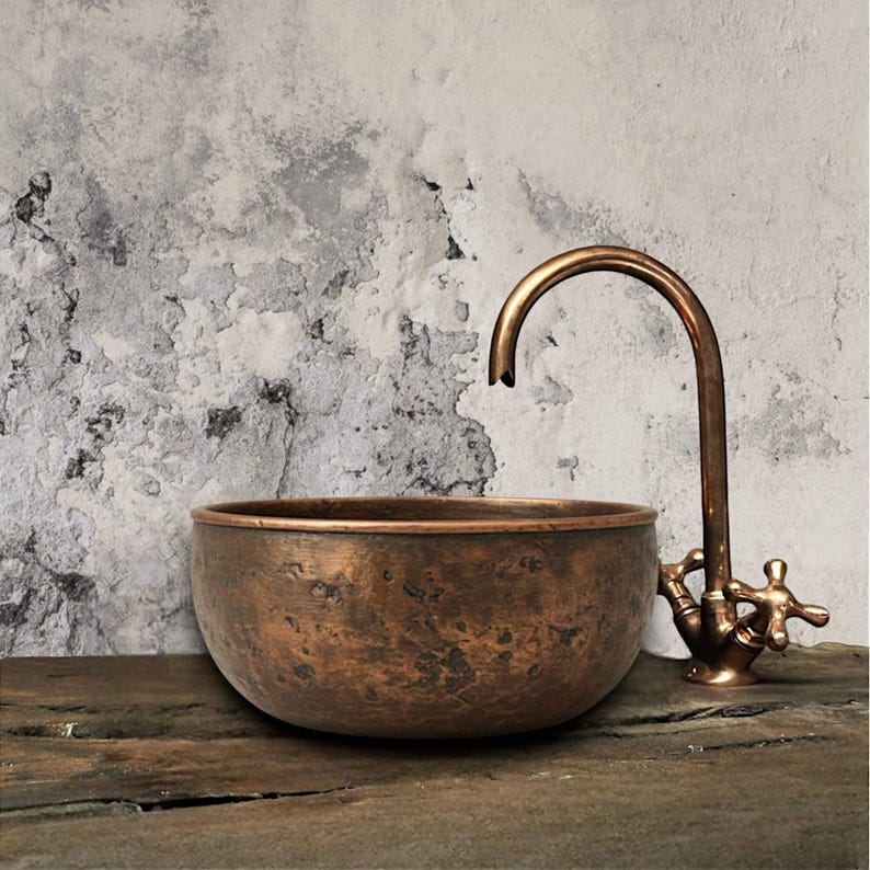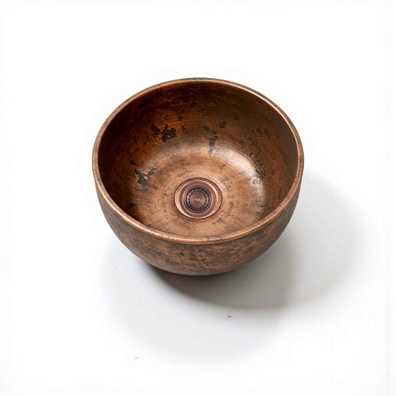 Aged Copper Bathroom Vessel Sink β Rustic Vanity Countertop Round Bowl Basin