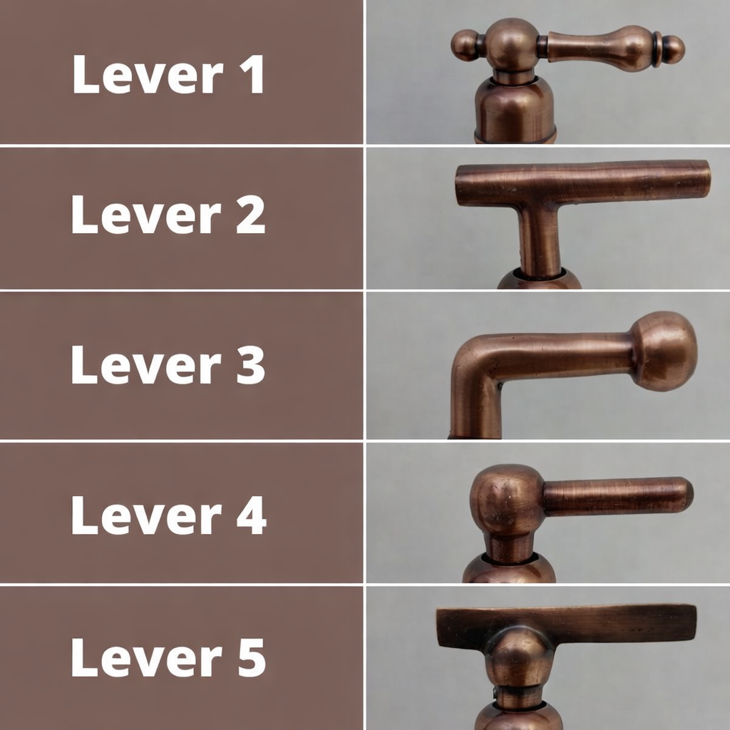 Enhance your kitchen or bathroom with this Solid Brass Faucet featuring a stunning Antique Copper Finish and double lever handles. With a 12.5-inch gooseneck spout and a 6-inch reach, this faucet offers both elegance and functionality. The premium brass construction ensures long-lasting durability and resistance to corrosion, while the unique copper finish adds a vintage touch to any space. Choose from five lever styles to personalize the look of your faucet, making it a perfect fit for modern, industrial, or rustic decor themes.