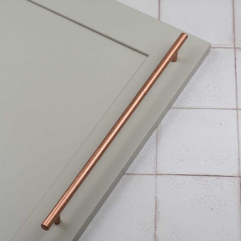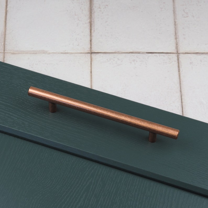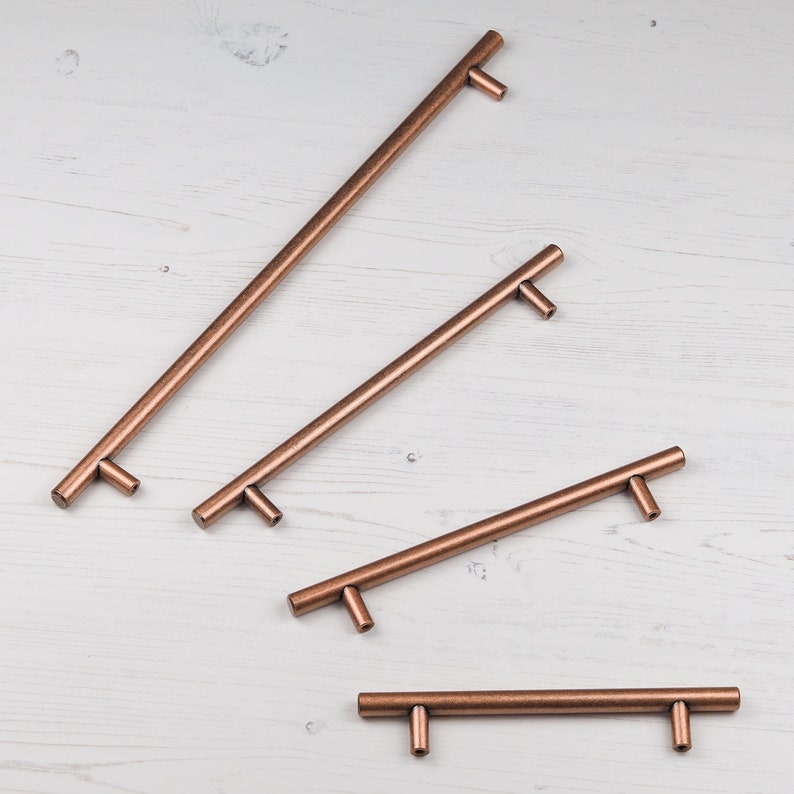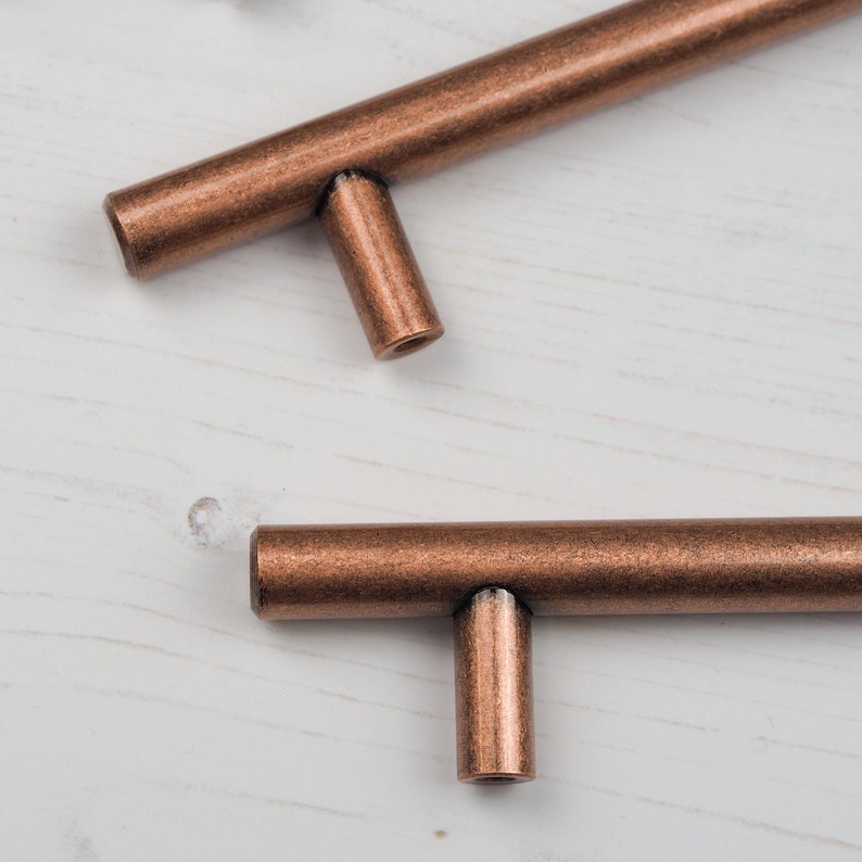 Introducing a beautiful contemporary copper cabinet handle - T Pull style. Works great on cabinet doors, wardrobe drawers, cupboards, kitchen units and just about anything that can open.