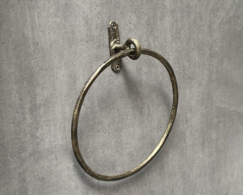 Antique Solid brass Towel Ring , Handcrafted for durability and style, this round towel holder combines classic elegance with practical design, perfect for hanging hand towels in any decor.