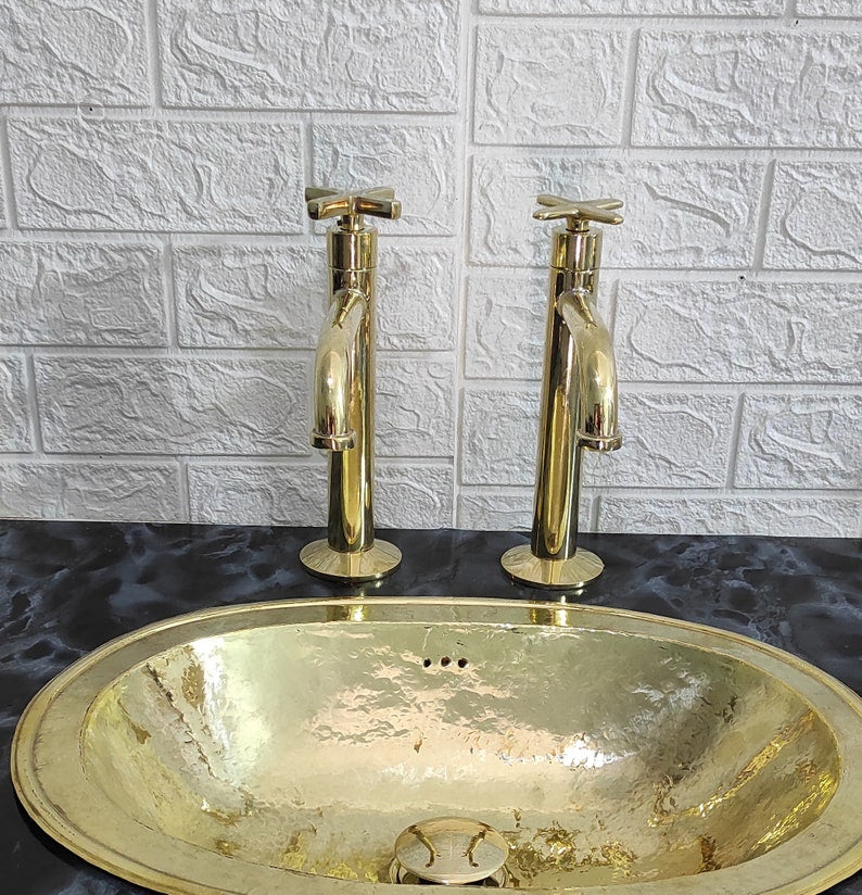 - Unlacquered brass Bathroom faucet L Shape - Cold or Hot Water Tap - One Hole Faucet