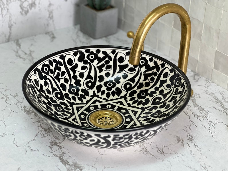 Antique Wash Basin, Vessel Sink, Bathroom Basin, Sink Bowl, Moroccan Handmade Ceramic Basin, Free Gift INCLUDED