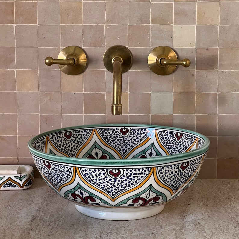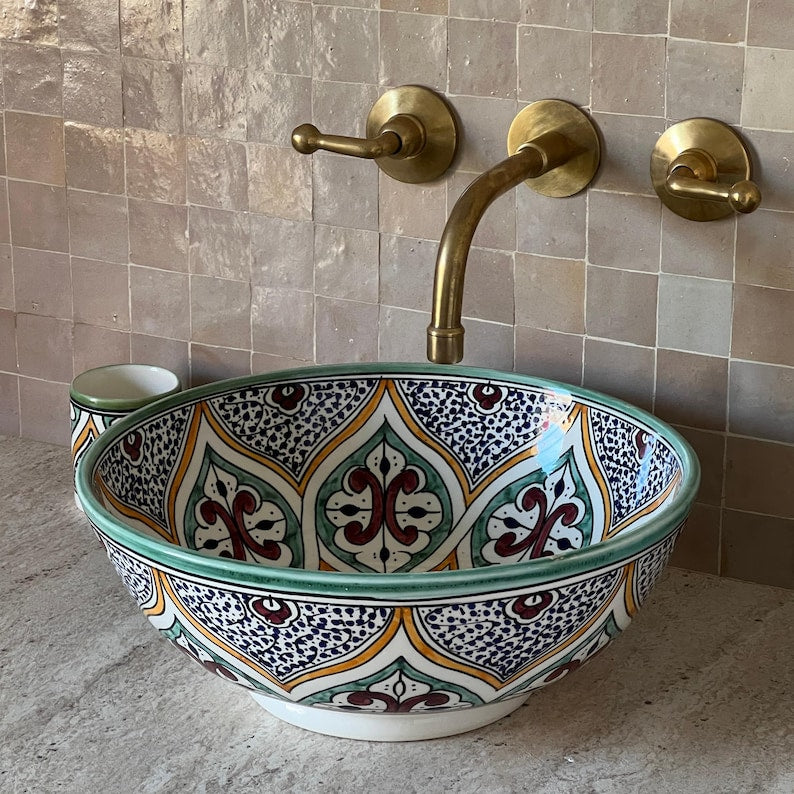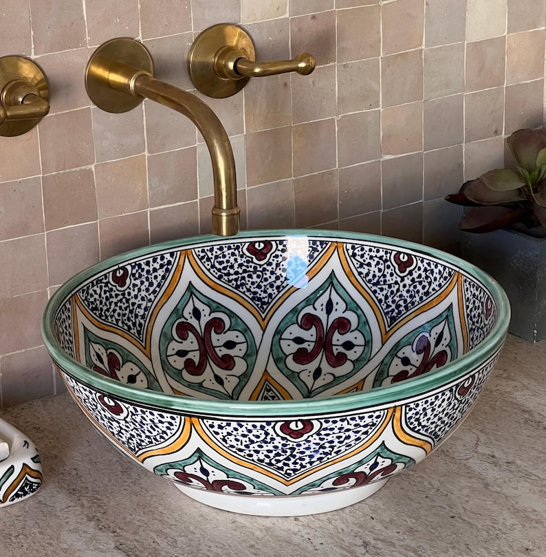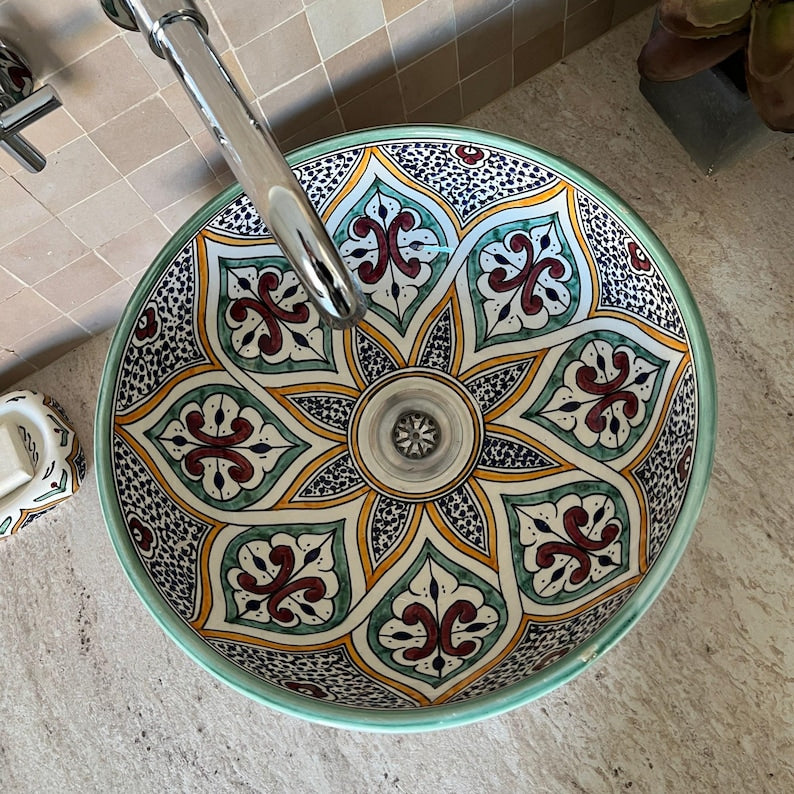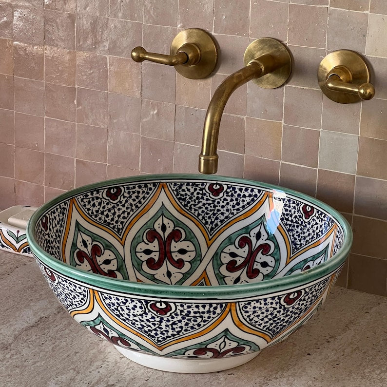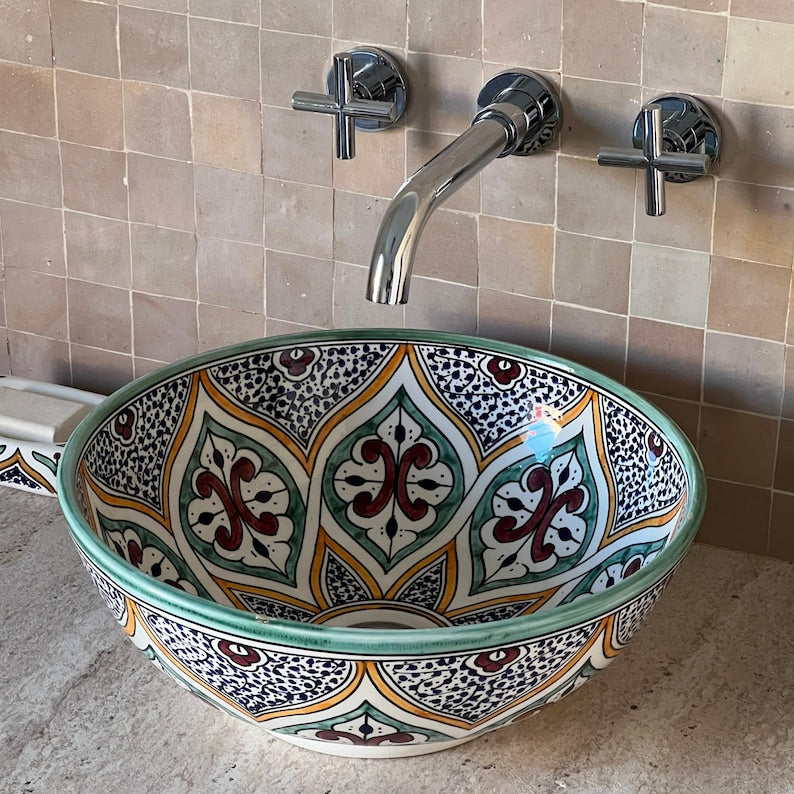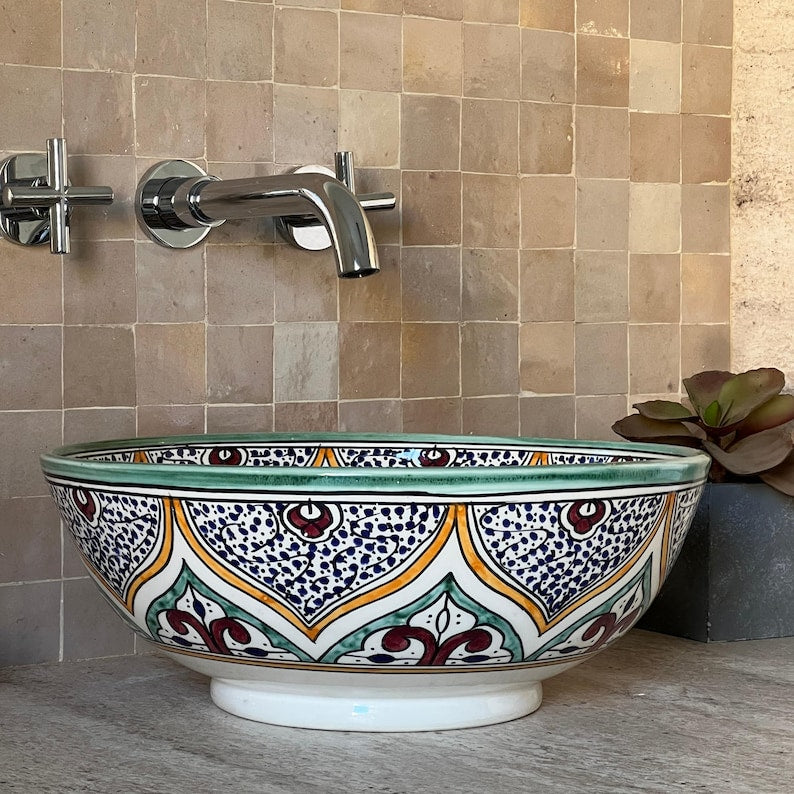 Antique Wash Basin, Vessel Sink, Bathroom Basin, Sink Bowl, Moroccan Handmade Ceramic Basin, Free Gift INCLUDED