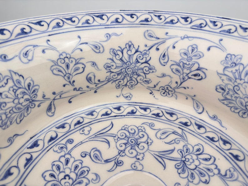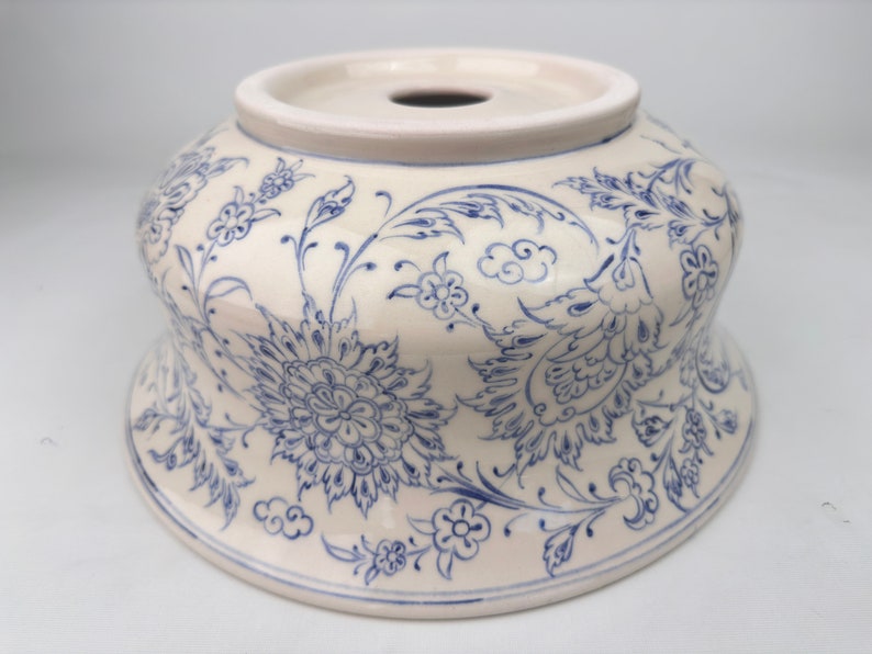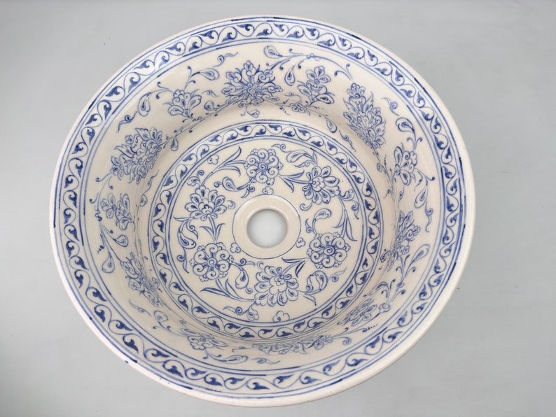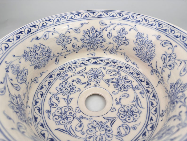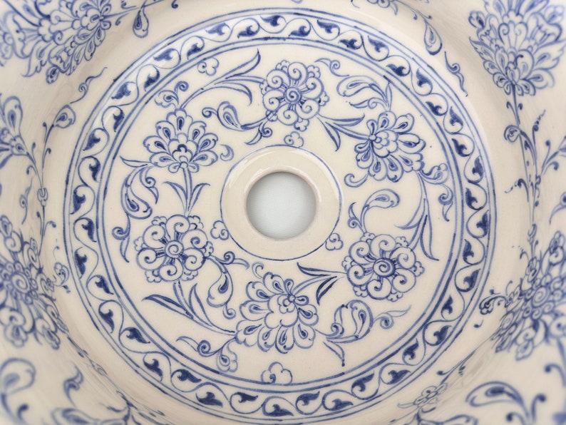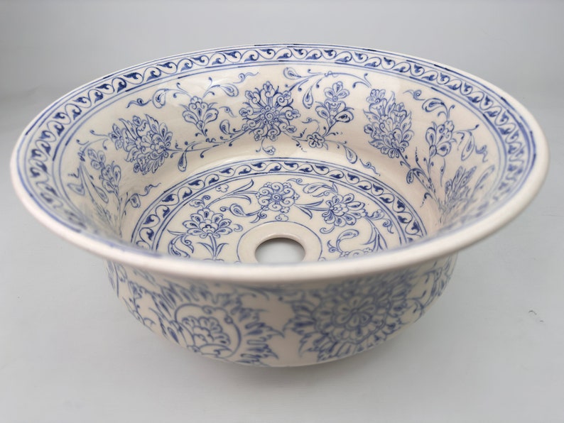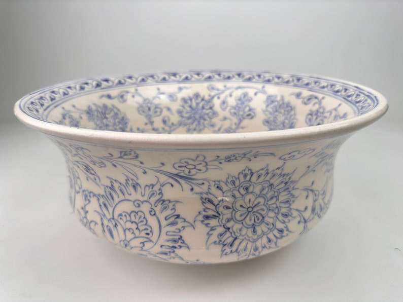 Ceramic Sink Bowl, Bleu Blanc Floral pattern, handmade and hand painted.