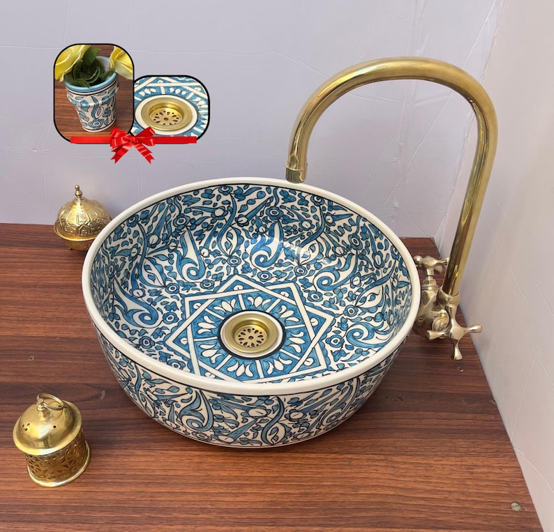 Experience Moroccan Elegance with Our Handcrafted Vessel Sink