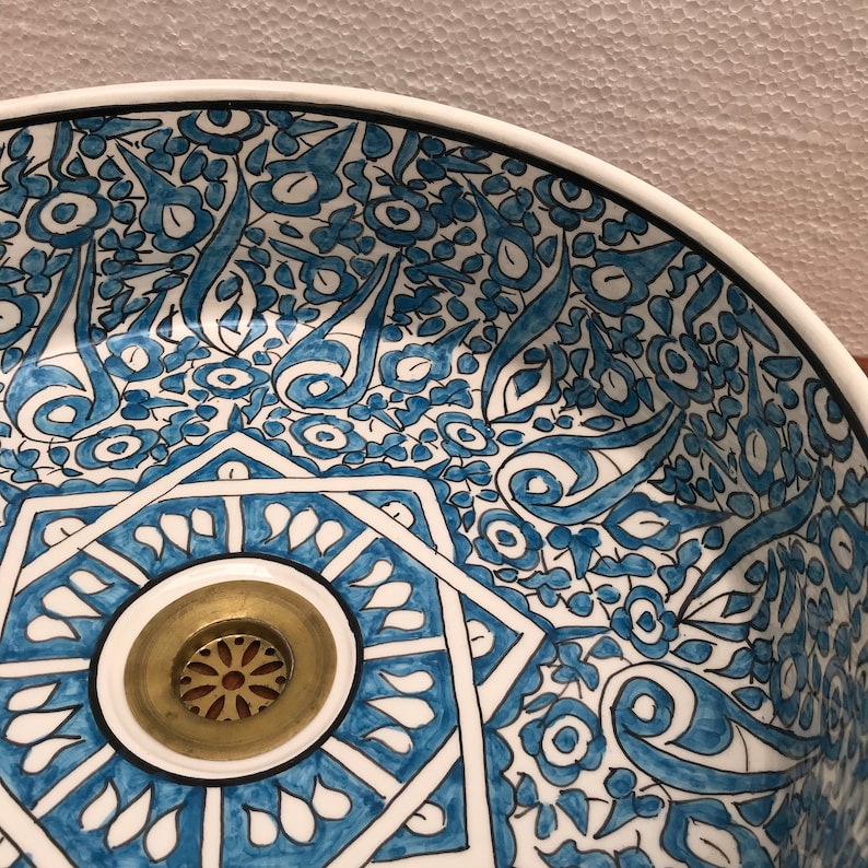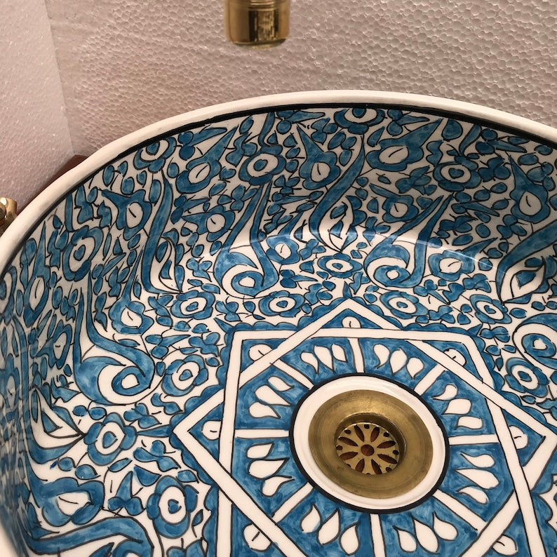 Transform your bathroom with the exquisite charm of our handcrafted Moroccan vessel sink. Each sink is a unique masterpiece, created by skilled artisans using traditional Moroccan techniques, ensuring no two sinks are exactly alike. Embrace the slight imperfections that add to the authenticity and beauty of these antique pieces.