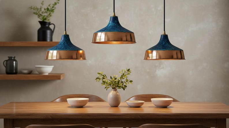 Perfect above a kitchen island, dining table, bar counter, or entryway. Each pendant is handmade and patina-finished, so the tones and texture will vary slightly—making every piece one of a kind. A great fit for modern, industrial, boho, Mediterranean, and rustic-modern interiors.