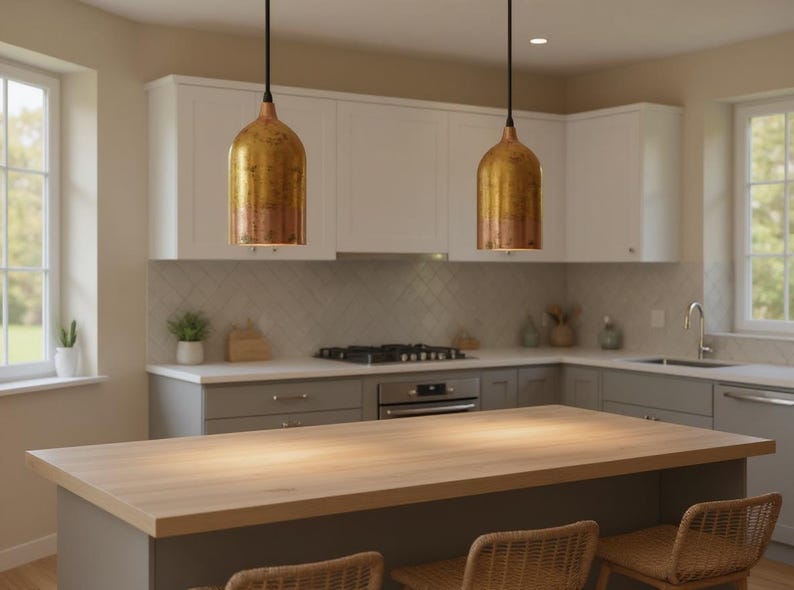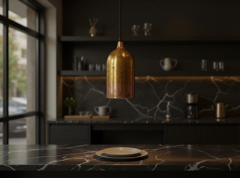 Add a warm, modern touch with this handcrafted cylinder pendant light in a rich brass/copper finish. The clean tubular shape creates focused downward lighting—perfect over kitchen islands, bars, dining tables, hallways, or bedside areas. The metal surface develops natural character and subtle variation, giving each piece a unique artisan look. A great fit for modern, industrial, minimalist, and contemporary interiors, especially when styled in multiples for a sleek designer effect.