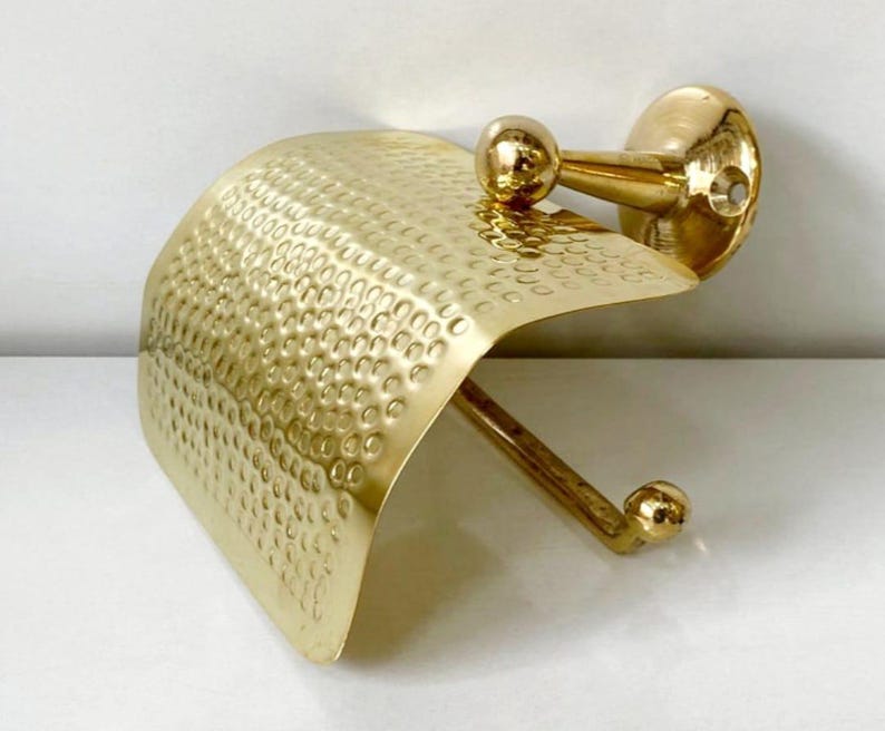 Brass Hammered Toilet Paper Holder, Unlacquered Brass Finish, Unique Artisan Handcrafted Toilet Roll Hanger
