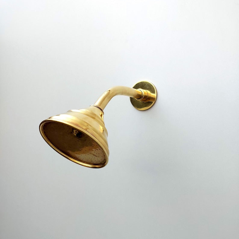 Brass Round Shower Head with Brass Curved Arm, Outdoor and Indoor Showerhead