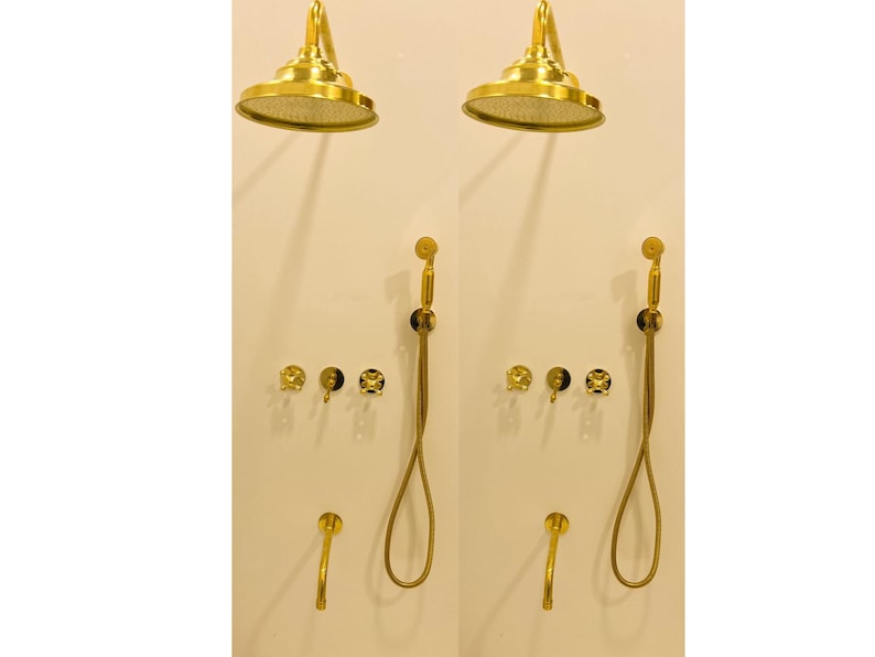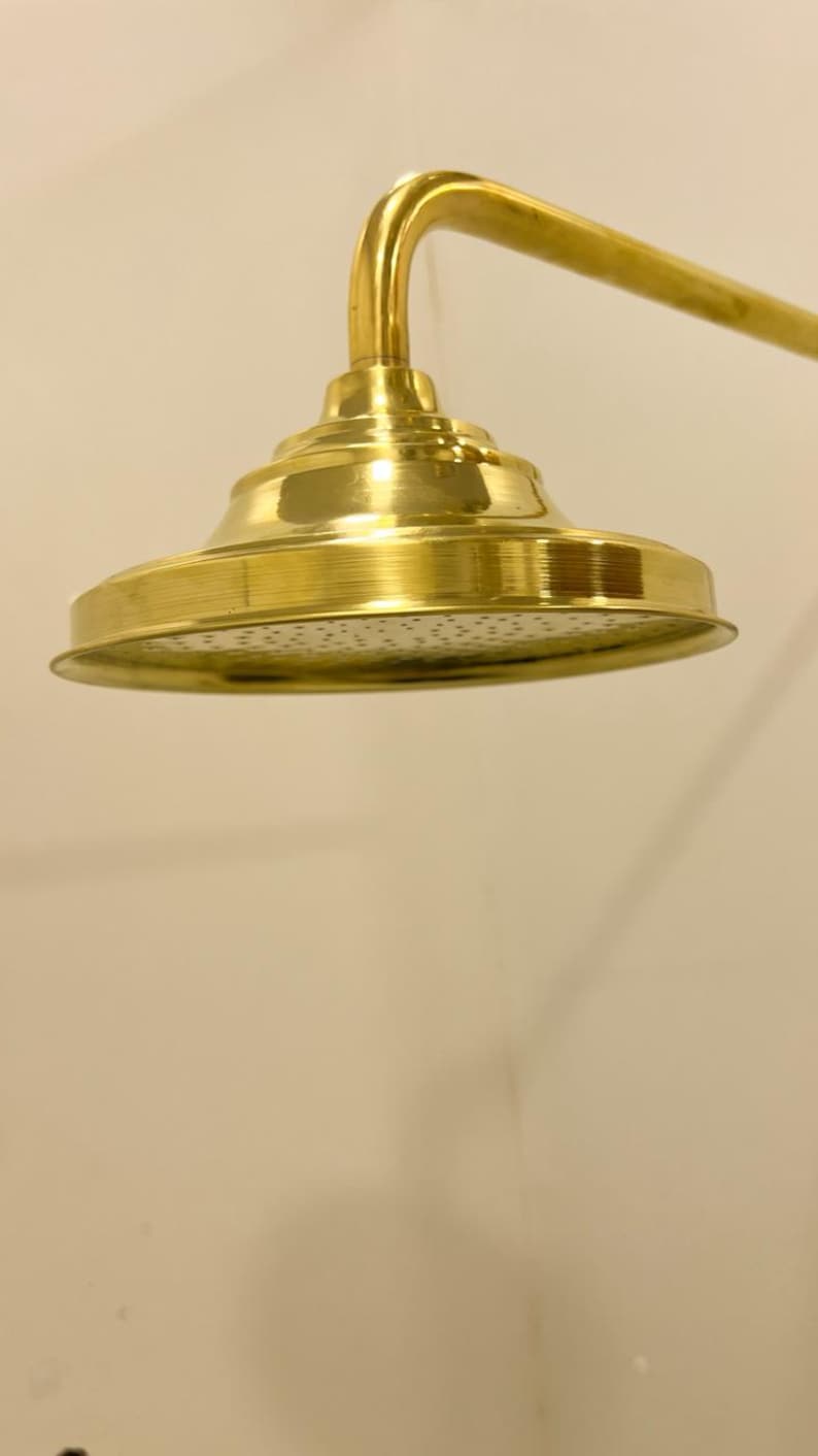 This shower system combines functionality and artistry, offering a refreshing rainfall experience while enhancing your decor with a warm, vintage brass glow. Each piece is handmade with care, ensuring both durability and uniqueness.