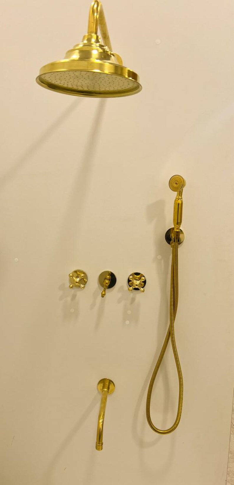 Brass Shower System,Antique brass, Bathroom shower, Vintage shower, Rainfall shower, Exposed shower, Outdoor shower, Moroccan Bathroom.