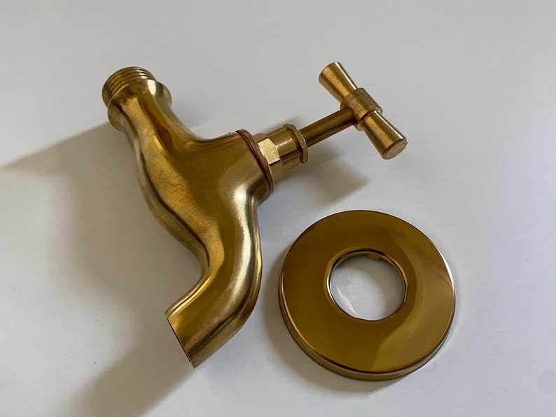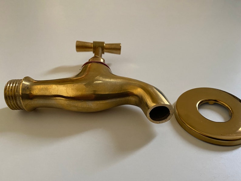 This faucet is 100% handmade of solid unlacquered brass, it gets warm patina overtime. It will add an elegant, charming and antique decoration to your space.