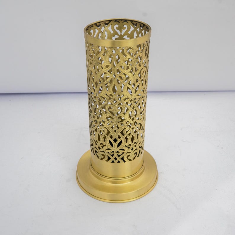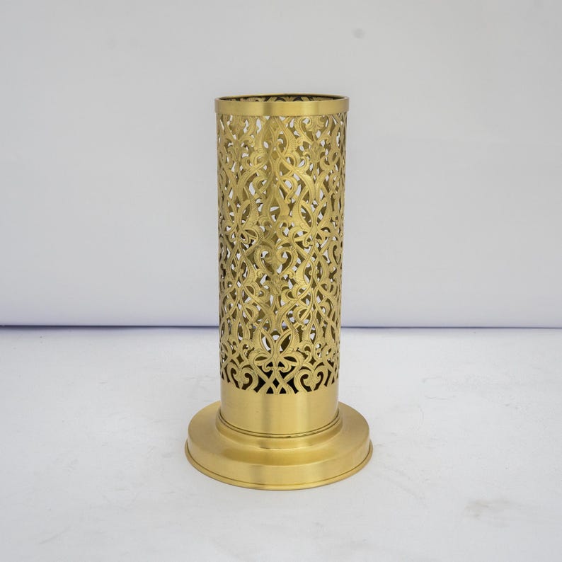 Brushed Brass Bedside Light, Pierced Cylinder Lamp, Brass Table Lamp | Duty-Free