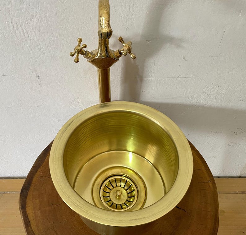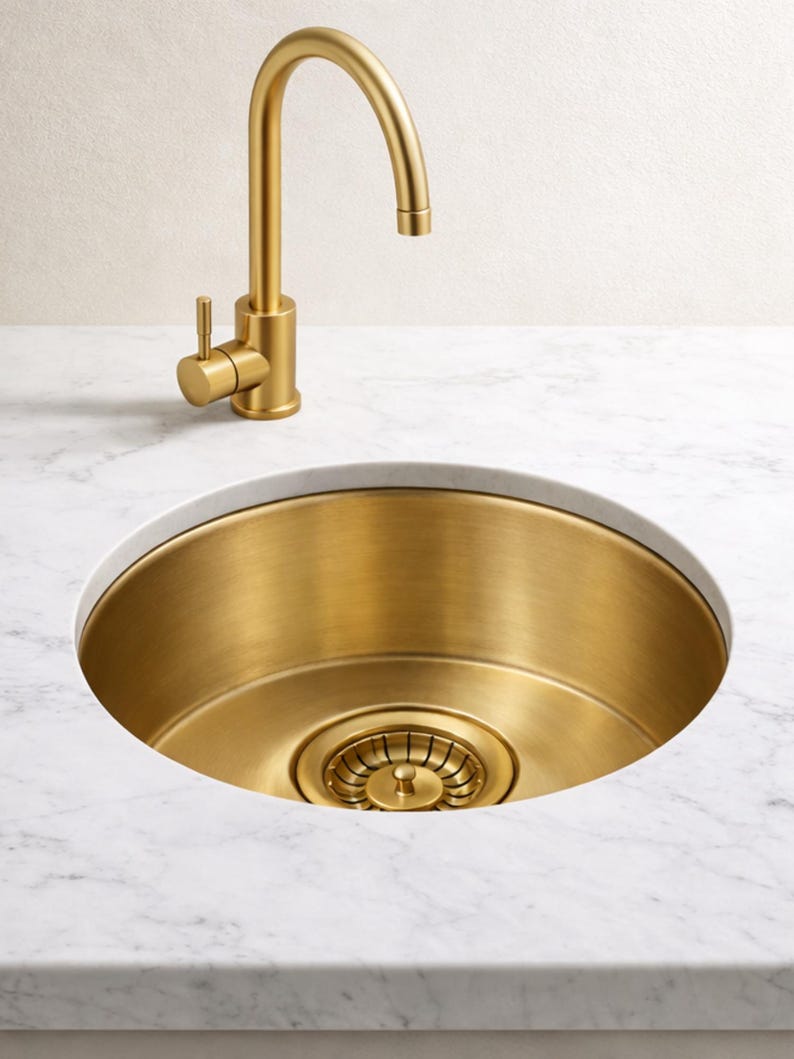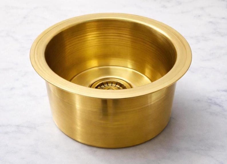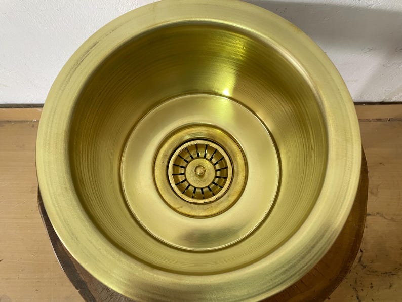 Elevate your bathroom with this round undermount brass sink, featuring a smooth brushed satin finish that delivers a modern, high-end look. Designed to install beneath the countertop, it creates a seamless edge and a clean, minimalist feel—especially beautiful with marble, quartz, or natural stone surfaces.