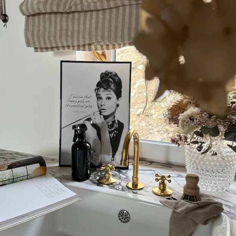 This unlacquered brass three holes faucet is not only elegant, but can adjust to you vanity's size.
