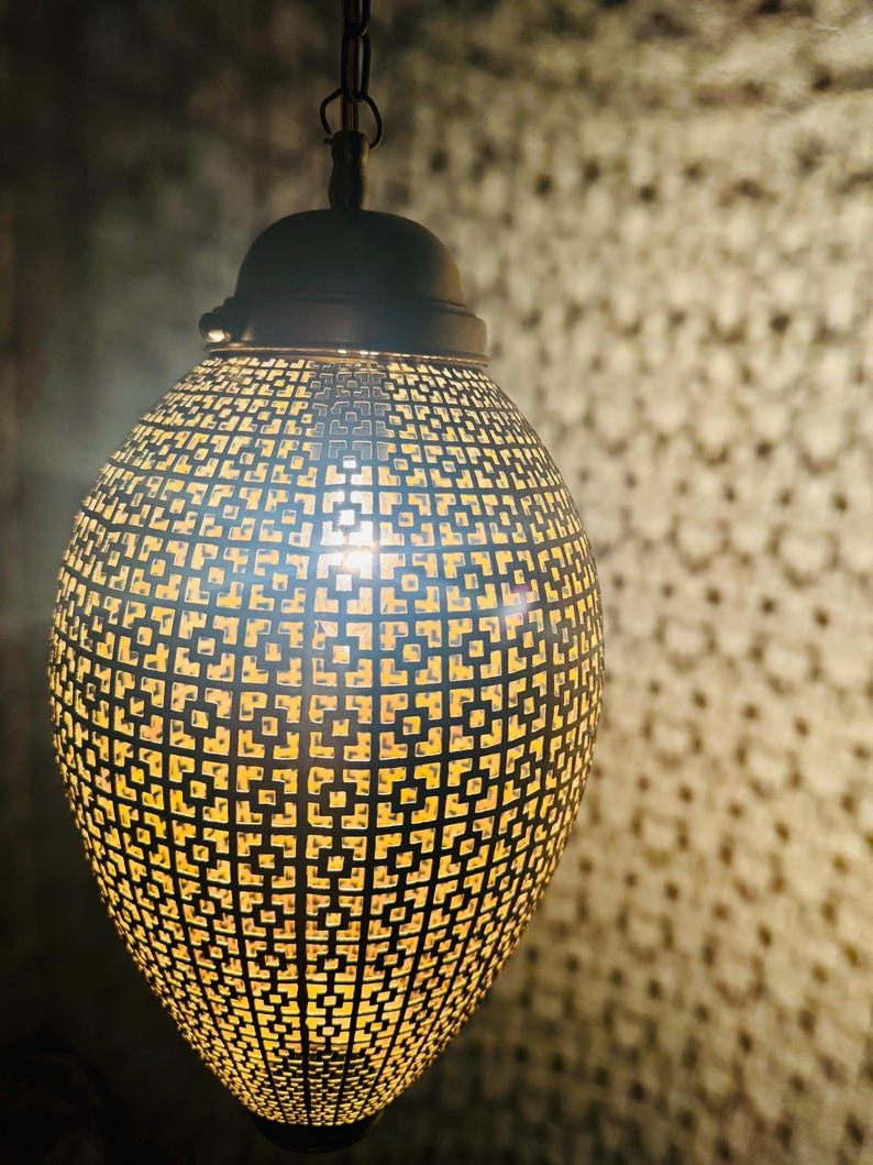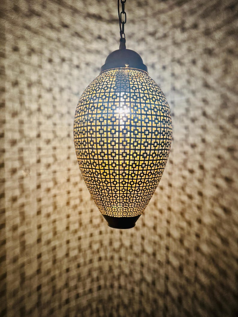 Contemporary Moroccan Sphere Light – Laser-Cut Brass Pendant with Lattice Shadow Patterns