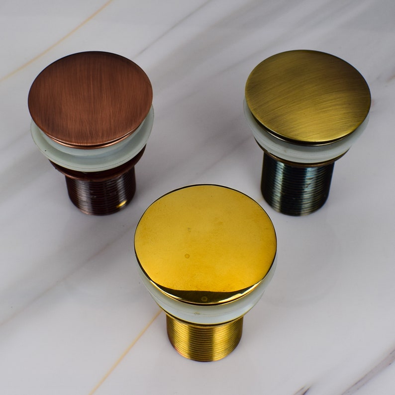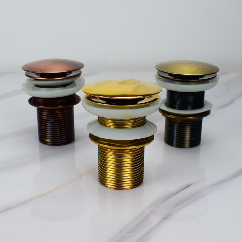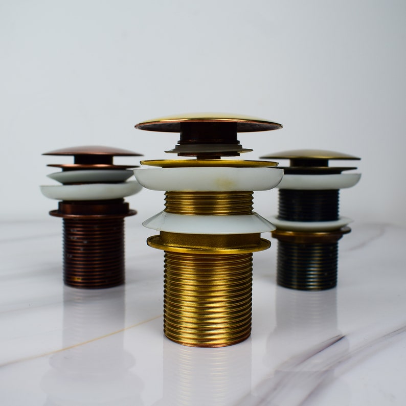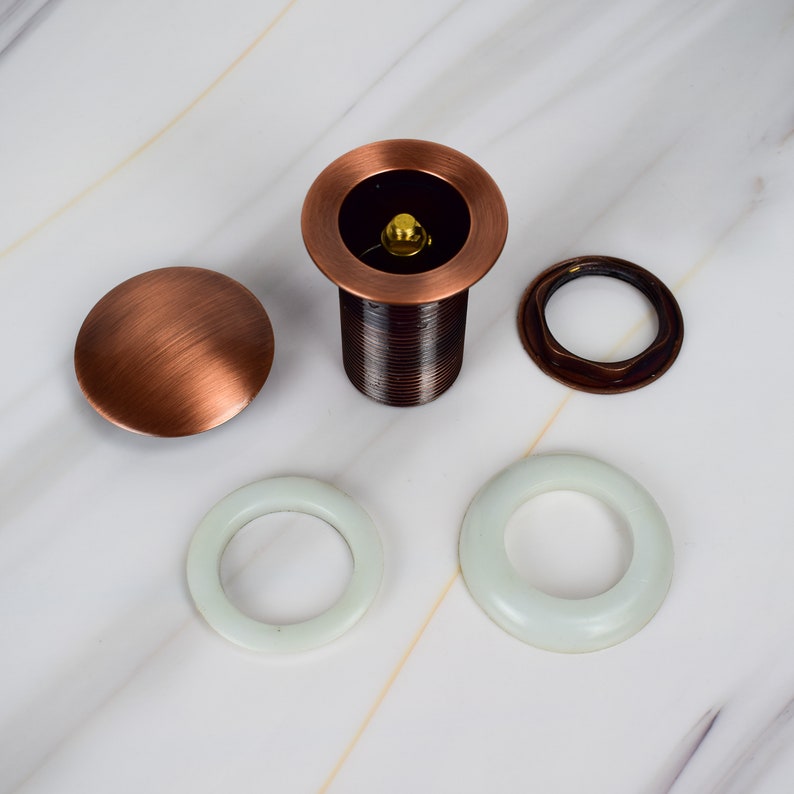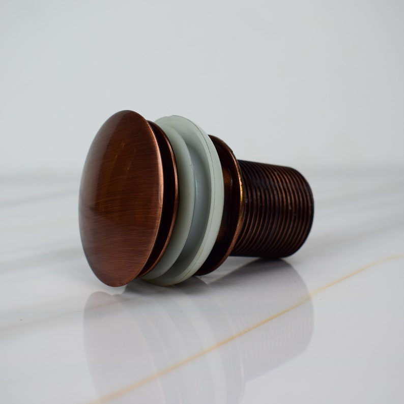 Cooper Drain for Bathroom Sink, Handmade Brass Push Up Button, Solid Brass Drain