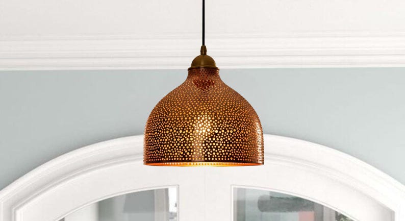 Handmade Copper Dome Hanging Light, Ceiling Pendant Lamp, Dome Lampshades, Dome Light Fixture, Rustic Chandelier, Kitchen Island Lighting