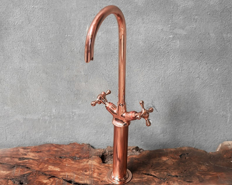 Copper Kitchen Faucet: Gooseneck Sink Mixer with Cross Handles