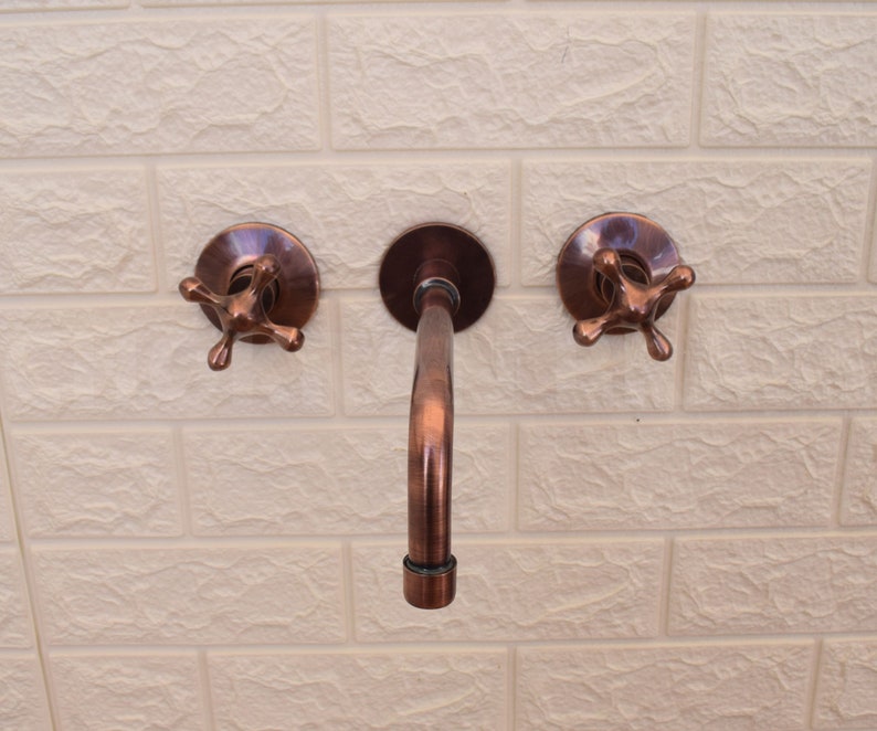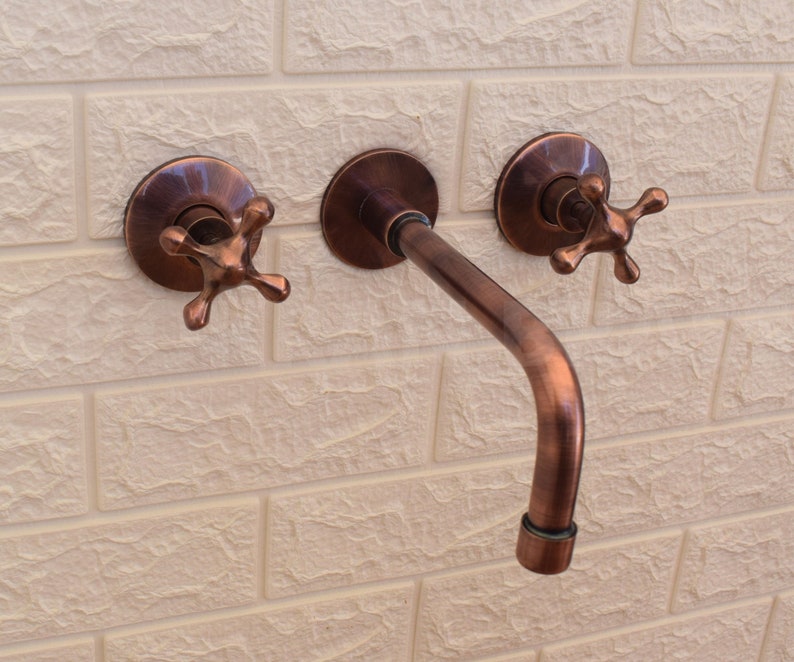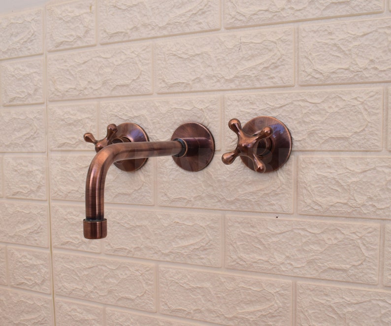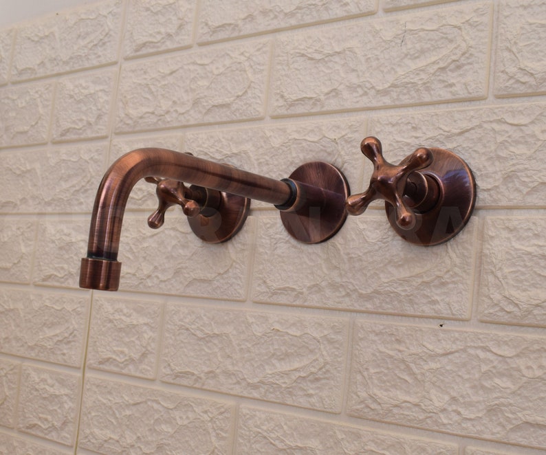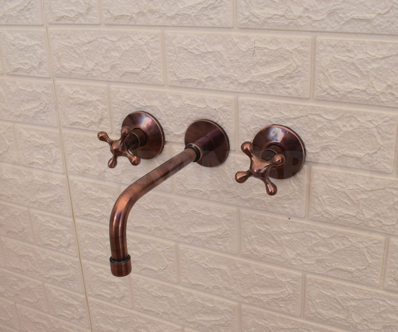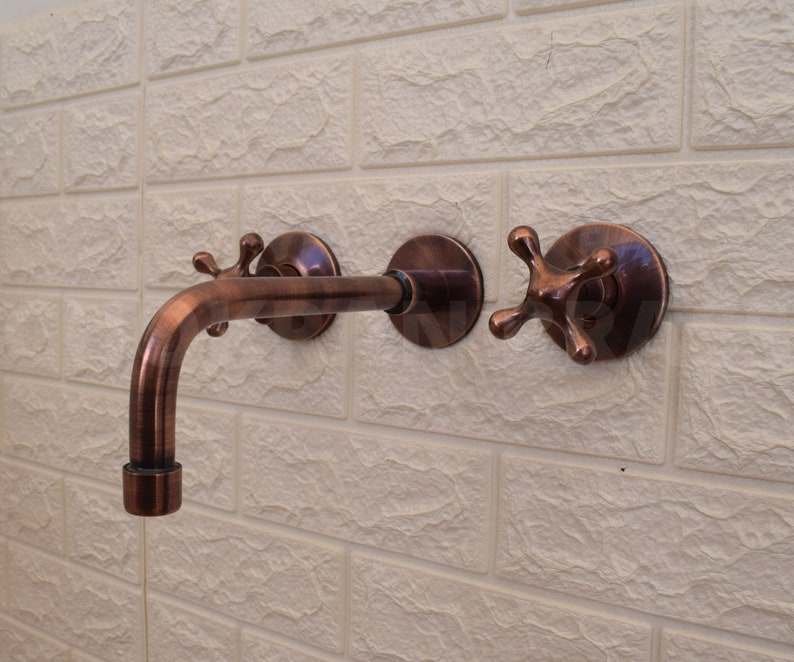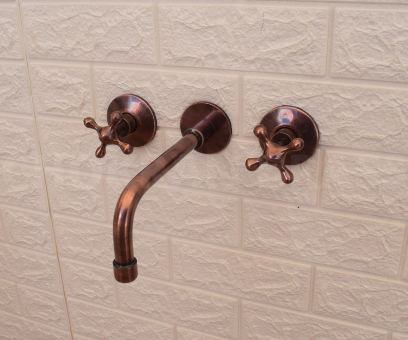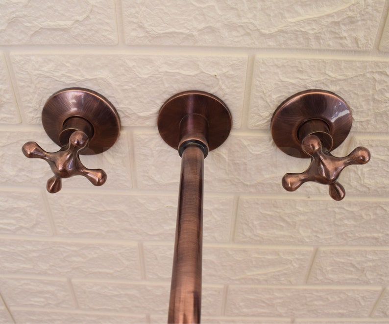 Copper Vintage Wall mounted bathroom faucet, Cooper Wall Mount Faucet, Vintage Style Faucet, Antique Copper Wall Mount Faucet Sink