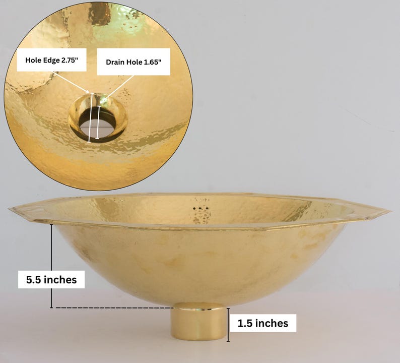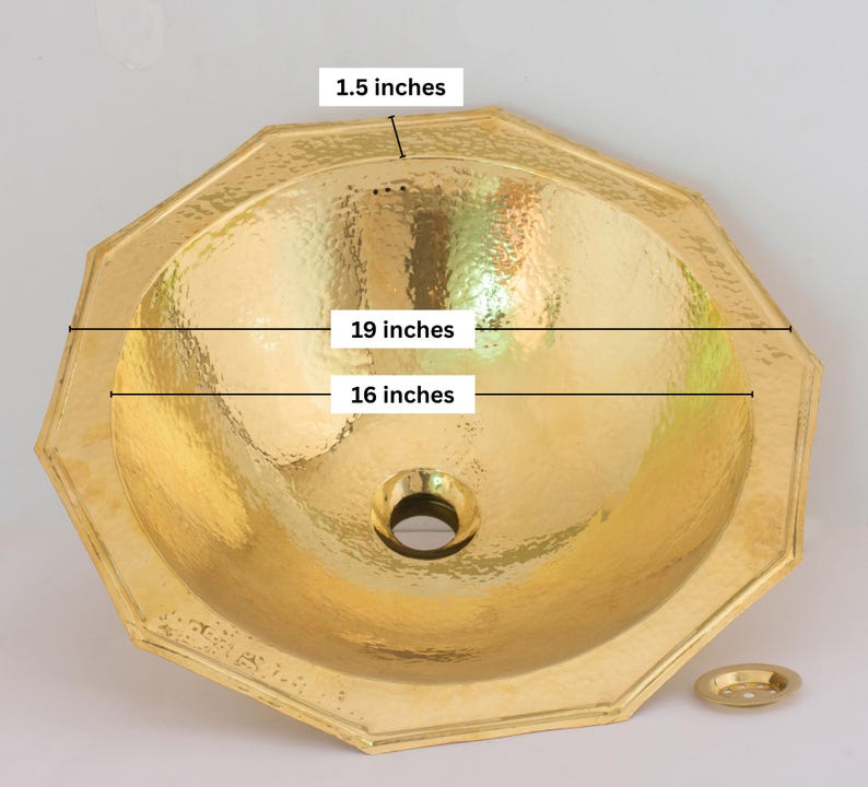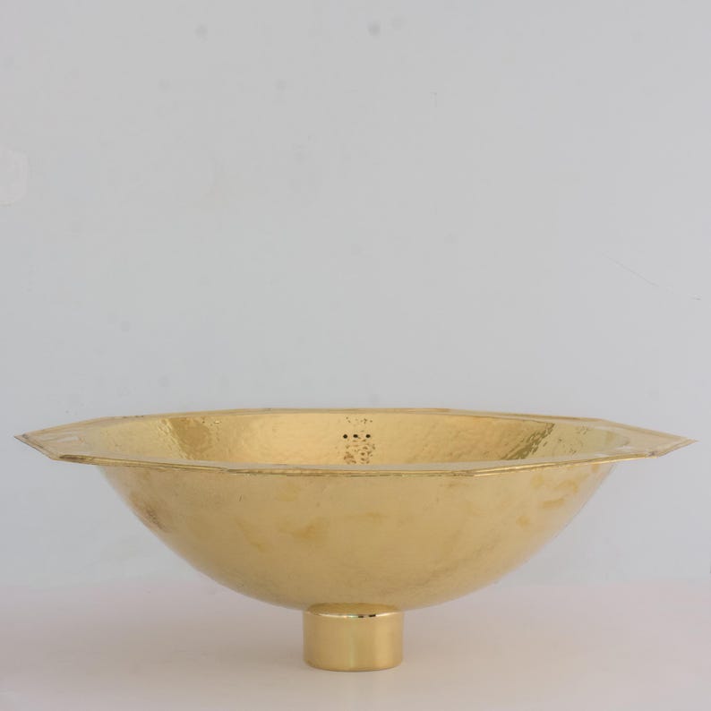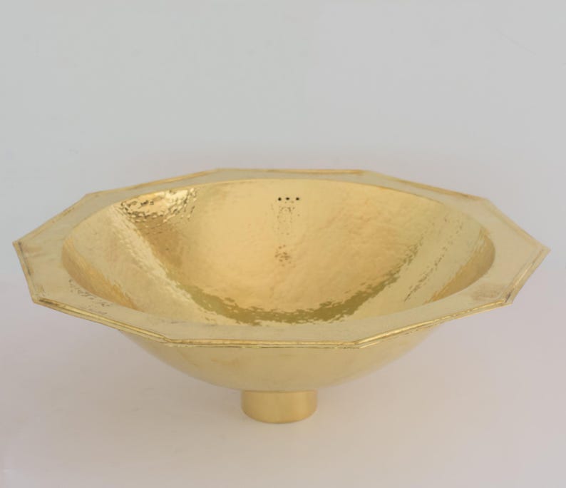 Handcrafted hammered Decagon solid brass drop in bathroom sink, Made in Marrakech by passionate skilled craftsmen using pure heavy brass.