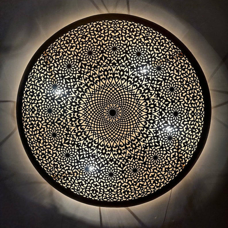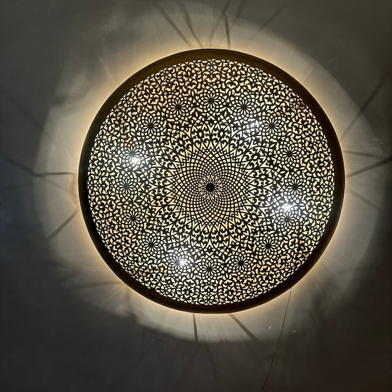Elegant Moroccan Circle Wall Sconce, Handmade Moroccan wall light Available in Multiple Sizes for any Room, Moroccan lighting, Brass lamp