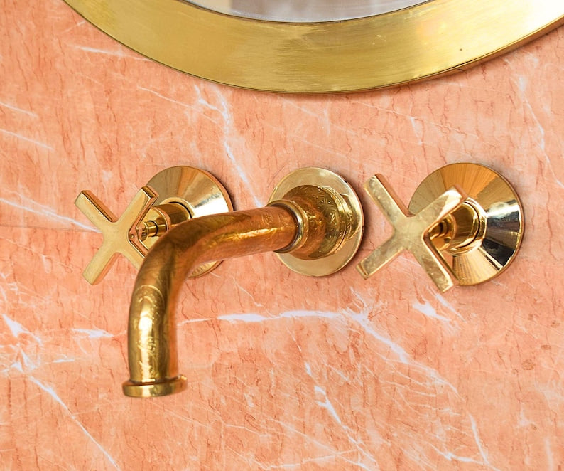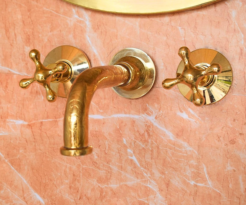 Engraved Brass Wall Mounted Faucet - Handmade Moroccan Bathroom Fixture
