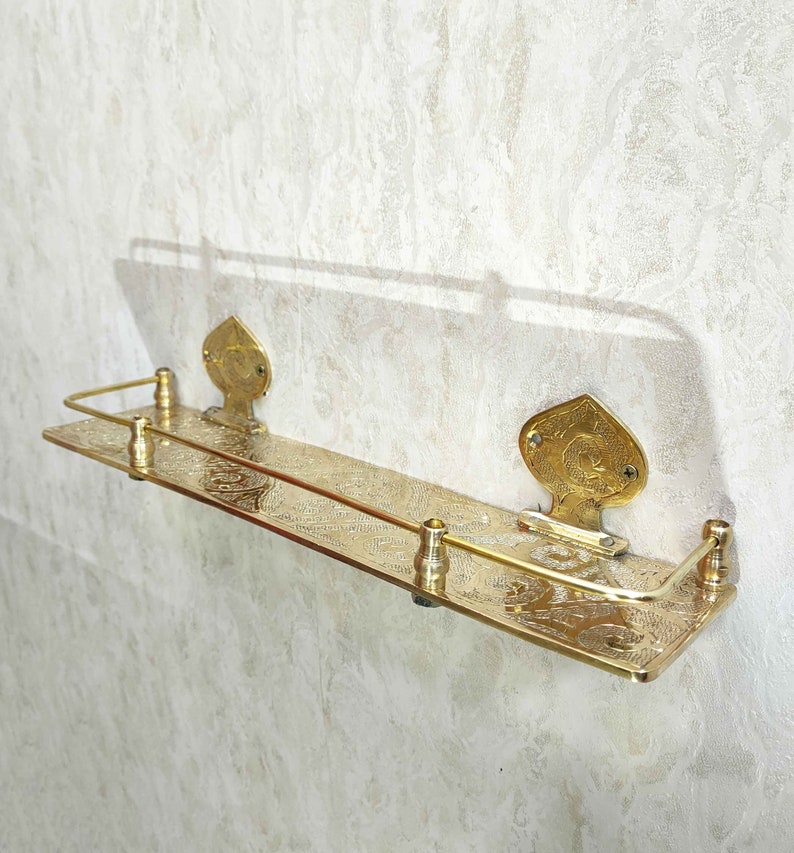 Engraved Solid Brass Wall Bathroom Shelf, Small Bathroom Shelf - Moroccan Handmade Bathroom Shelf