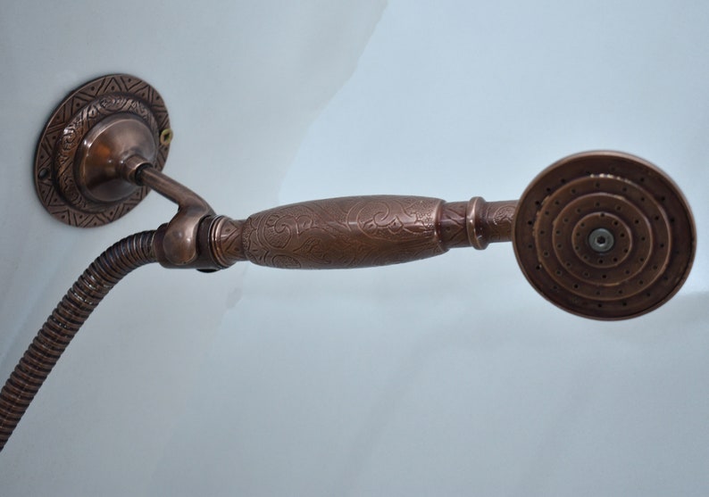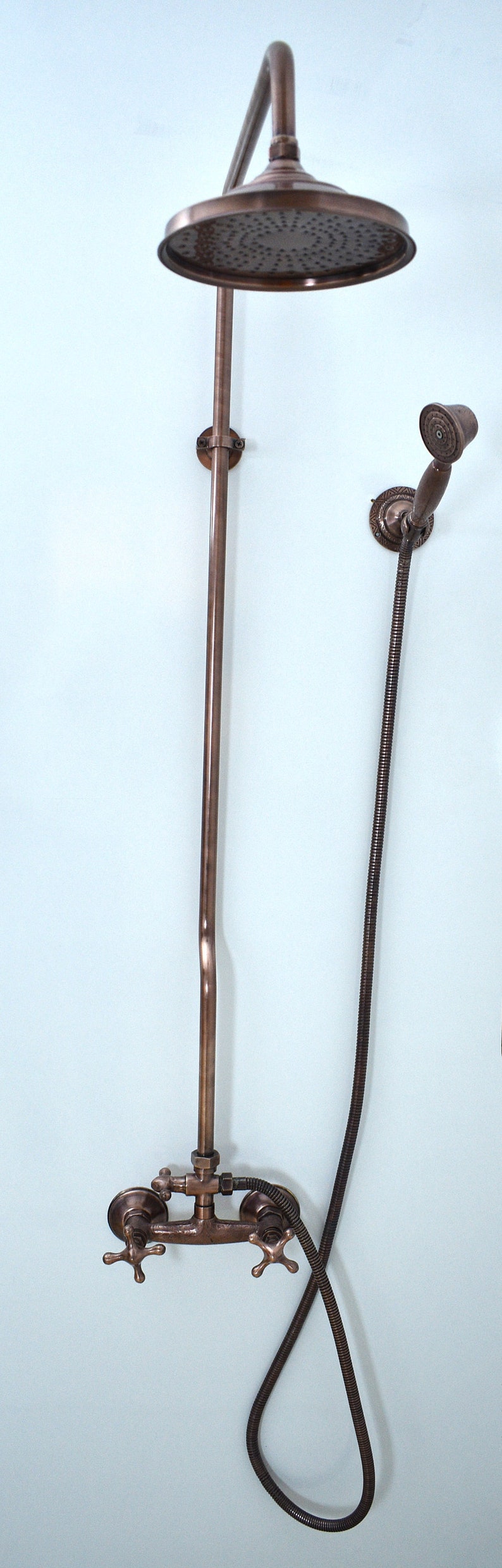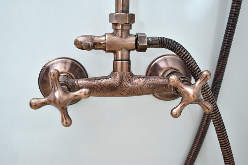 Exposed Copper Shower System, Round Copper Shower Head, Combo Handheld Shower, And Copper Shower Faucet