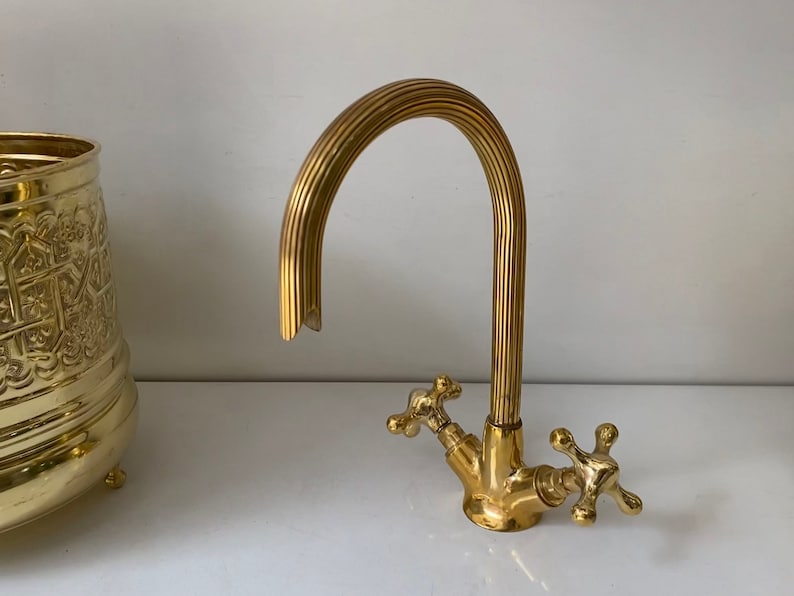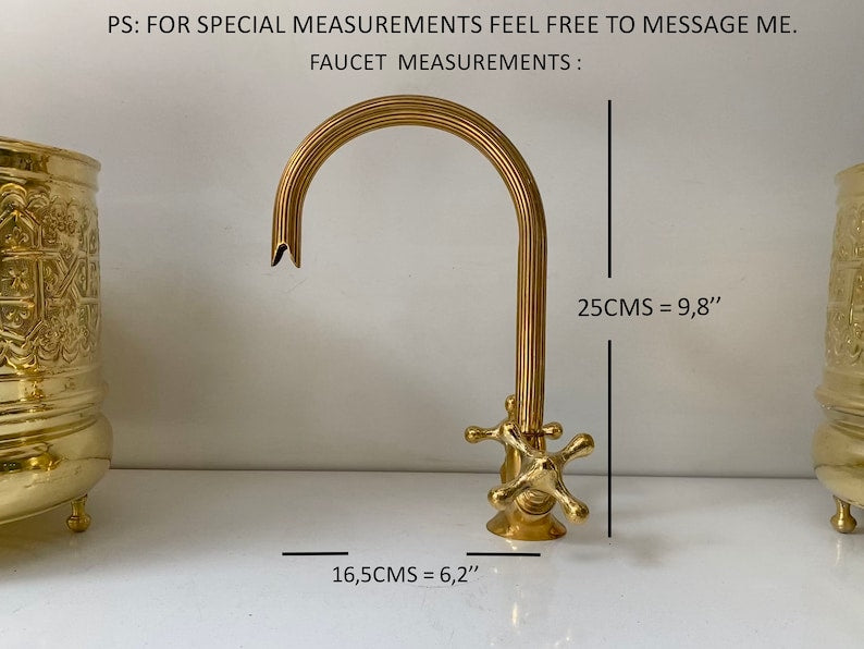 This Faucet is 100% handmade of solid unlacquered brass, it will add an elegant, charming and antique decoration to your space.