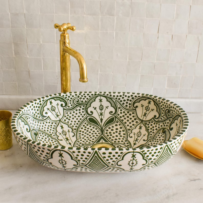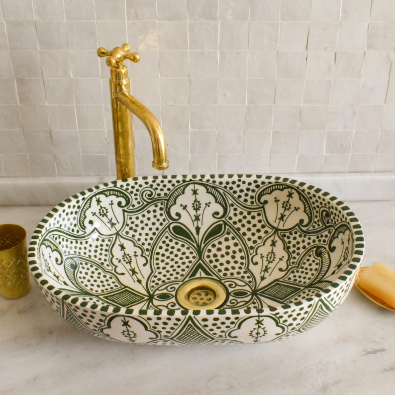 The traditional Moroccan Sink is a handmade product, manufactured by our Artisan who spent half his life in this Business which makes the quality astonishing, the shades of the color and the fabrics are ethereal.