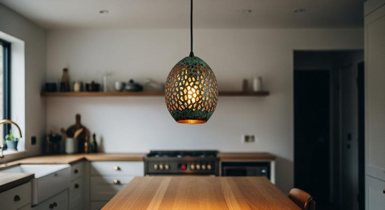 ✨ The rich contrast between the polished copper base and the oxidized green patina top adds character and depth to the lamp, casting a warm, elegant glow. Ideal for kitchen islands, dining rooms, cafes, or entryways.