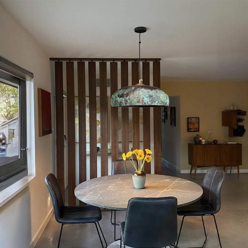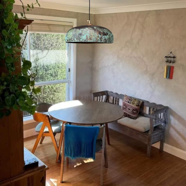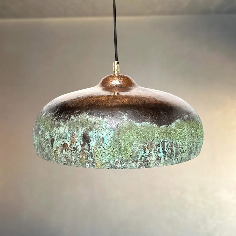 Green Patina Copper Pendant Light - Farmhouse Kitchen Island Lighting - Rustic Ceiling Lamp Shade Unique