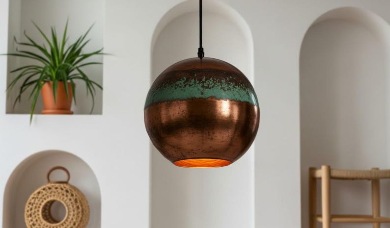 Elevate your interior with this handmade copper pendant light, perfect for kitchens, dining areas, or entryways. Each piece is artisan-crafted with premium materials and a unique patina finish, blending industrial charm with timeless design.