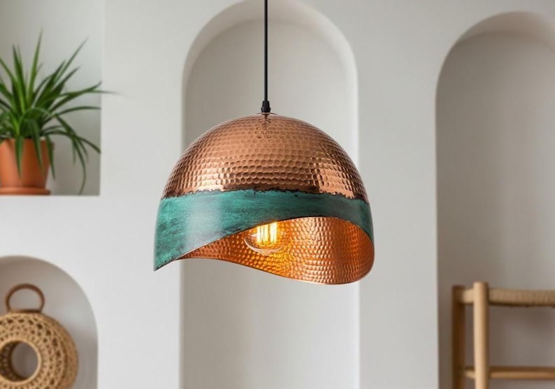 Green Patina Copper Pendant Light, Industrial Copper dome Light, Rustic chandelier, Hanging kitchen island Light, Pendant Light Fixture, Copper Oxidized Island Kitchen Lighting , Copper Ceiling Dome Pendant Lamp Lighting , Rustic chandelier, Rustic Copper Pendant Light Fixture