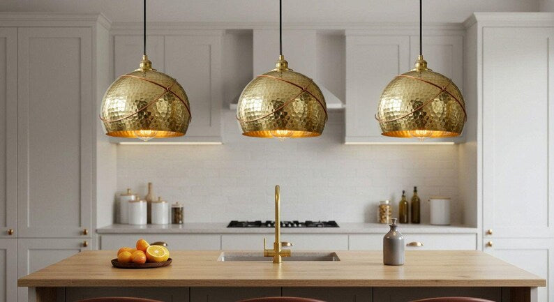 Hammered Brass Dome Pendant Light: Moroccan Ceiling Lamp