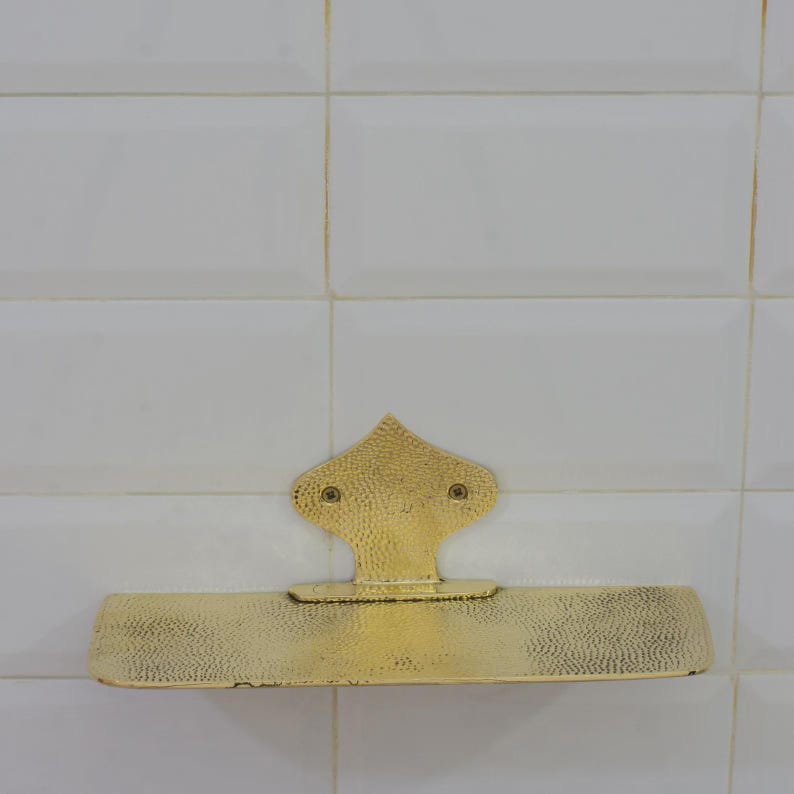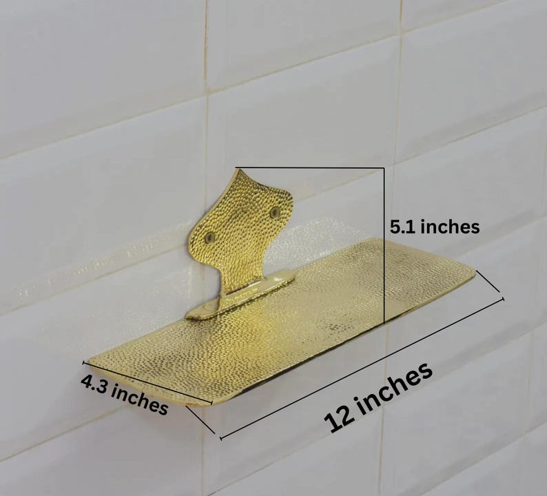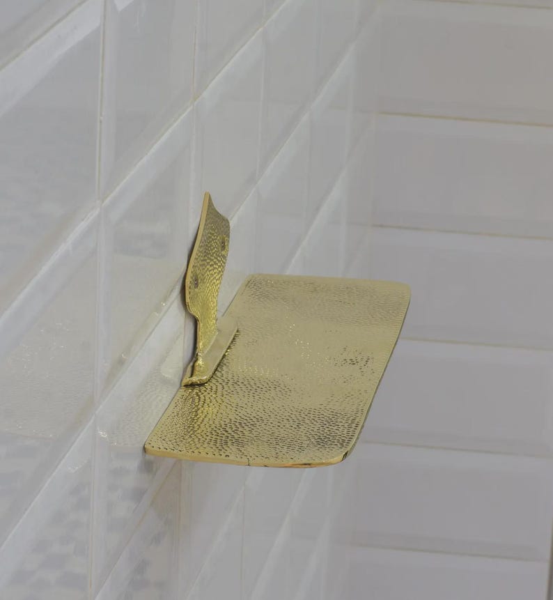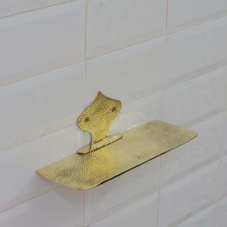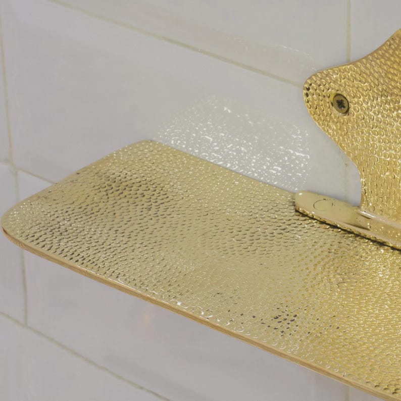 Hammered Brass Floating Shelf, Wall Mount Shower Shelf, Floating Bottle Holder, Wall Mount Shelf Brass, Shampoo Hanger