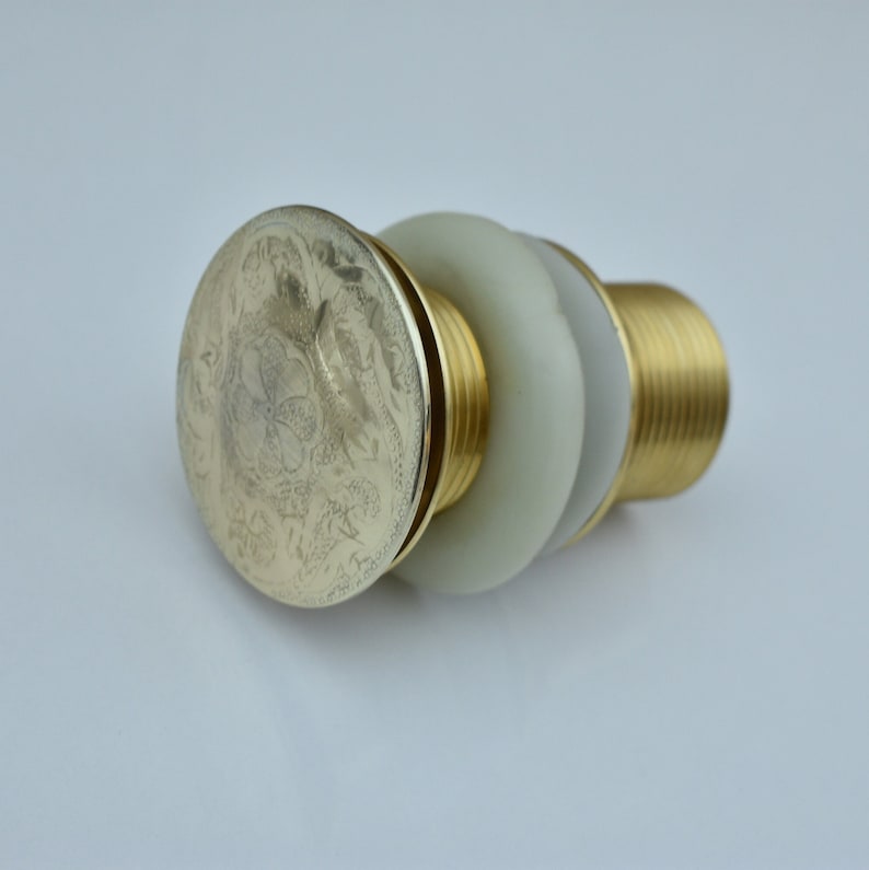 Solid Brass Drain, Embossed or Hammered Drain Push Button