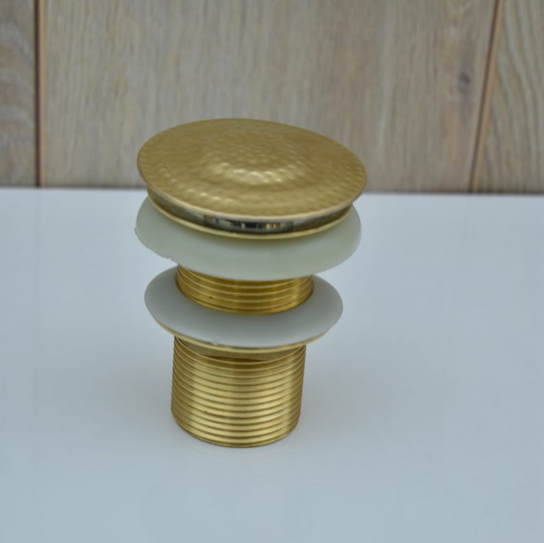 Hammered Brass Sink Drain: Solid Unlacquered Pop-Up Drain
