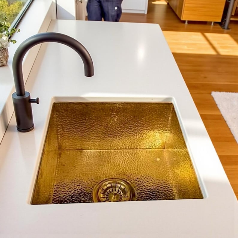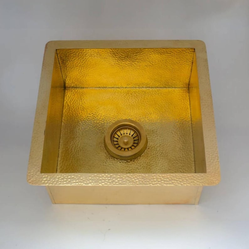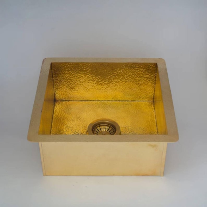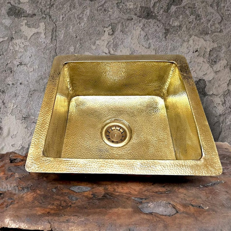 Hammered Brass Undermount Sink – Square Kitchen/Bar Basi