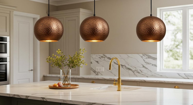 Hammered Copper Dome Pendant Lamp: Industrial Kitchen Lighting
