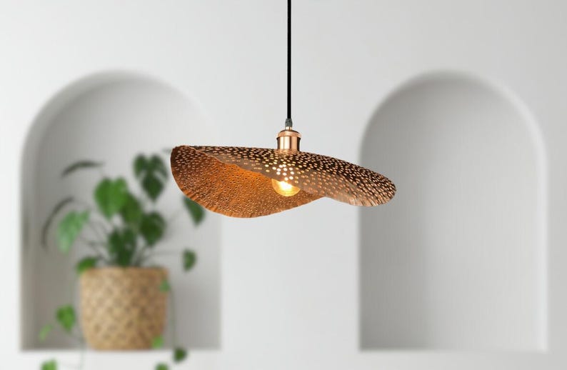 Hammered Copper Dome Pendant Light: Boho Kitchen Island Lighting
