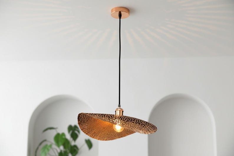 Copper Dome Pendant Light – Handmade Perforated Hanging Lamp