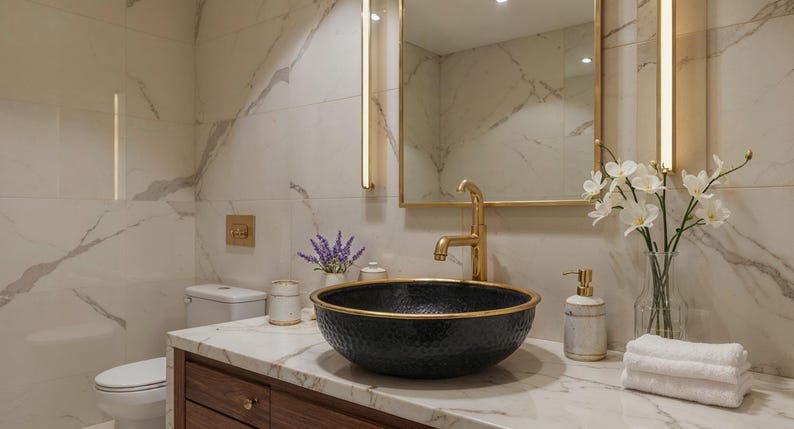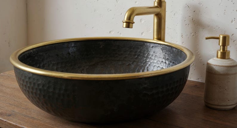 Infuse timeless elegance into your bathroom with this handcrafted honeycomb-patterned brass vessel sink. Featuring a matte gold finish and a detailed hammered texture, this round sink brings artisan character and warmth to any space. Its deep bowl and refined edges blend luxury and functionality, making it ideal for both classic and contemporary interiors. Pair it with a vintage-style faucet for the ultimate statement piece.