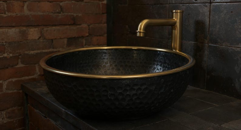 Hammered Honeycomb Brass Vessel Sink – Matte Gold and Black Finish