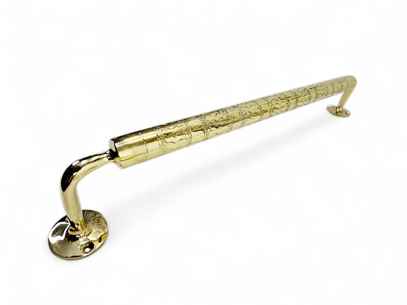 Hand-Engraved Unlacquered Brass Towel Bar: Moroccan Vintage Style